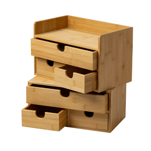 A sleek and practical storage solution designed to keep your workspace tidy and inspiring. Crafted from natural bamboo and finished with a smooth NC varnish, it offers durability, eco-friendliness, and a touch of elegance that fits seamlessly into any home or studio.