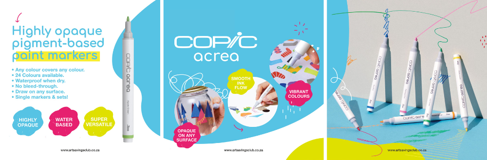 COPIC acrea offers a distinctive selection of water and pigment-based paint markers with opaque shades ranging from snow-white to juicy pastels and shiny metallics. The versatility unleashes endless creative possibilities since you can work on a variety of materials such as paper, glass, iron, plastic, and fabric with flat and streak-free results. They also work perfectly on artworks created with COPIC alcohol-based markers as you can easily add highlights and finishing details. The sleek matte design allows for an easy grip while the fine 0.8mm nib is optimized for intricate detailing and delivers a smooth ink flow for a seamless drawing or writing experience.