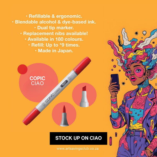 A new entry level graphic marker is introduced. Copic Ciao features a reduced ink volume and a carefully selected palette of colours, making it an easy marker to get started with. It comes with the same two nib types as Copic Sketch: the Super Brush and the Medium Broad.