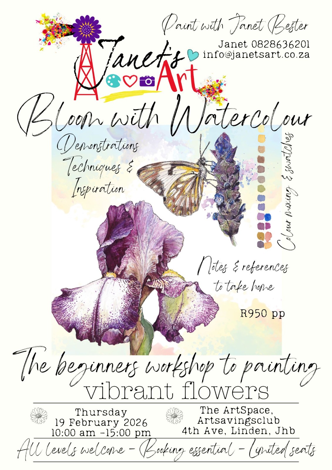 The beginner’s watercolour workshop with Janet Bester R950 pp          (With notes and references to take home) ArtSpace Artsavingsclub 4th Avenue, Linden Thurs 19 February 2026 10:00am […]