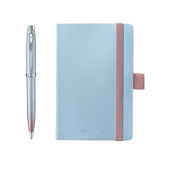 The Sheaffer 100 Expressions Gift Set collection combines artistic pearlescent beauty with thoughtful presentation. These sets pair stunning ballpoint pens with coordinating notebooks in elegant packaging that arrives ready to delight. Built on the trusted 100 Series platform, the Expressions collection proves gift sets can be both beautiful and functional.