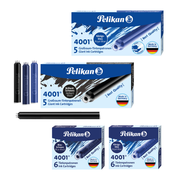 Pelikan’s 4001® ink has been a trusted choice for decades, offering timeless quality for writers and professionals. Its carefully crafted formula ensures smooth, consistent ink flow for crisp, bold written expression. The rich colour provides outstanding performance, whether for professional documents or creative projects. Designed to fit all Pelikan fountain pens and many other popular brands, these cartridges offer universal compatibility. Each pack contains multipal high-capacity cartridges, reducing the need for frequent refills. Made in Germany, they deliver exceptional reliability and premium quality. Ideal for everyday writing or special occasions, this ink ensures a consistent and bold finish every time. Pelikan’s 4001® Ink Cartridges are the reliable choice for those who value impeccable writing.