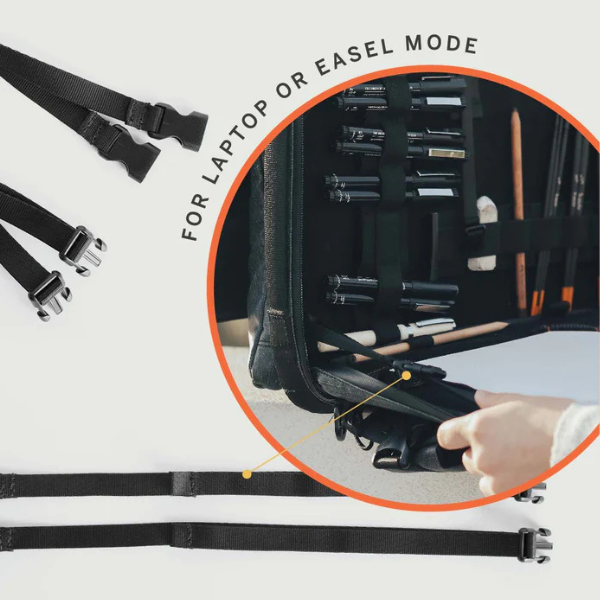 Buckle Straps: The Etchr Art Satchel Buckle strap replaces the original hook strap with a sturdier / stronger mechanism for holding the Art Satchel open in easel mode and laptop mode. Compatible with the Etchr Art Satchel. Slate Range / Field Case not supported. Sold as a pair.