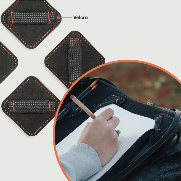 Corner Tabs: Versatile elastic / velcro pads are used to carry various tools or attach various media. Purchase to replace the existing Etchr Art Satchel or Etchr Slate Range Corner Tabs or add an extra four tabs to your kit.
