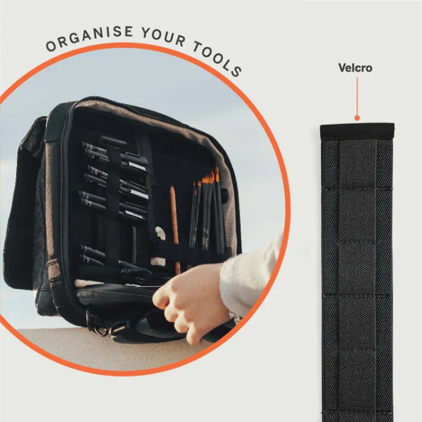 Tool Strips: Double layered industrial strength elastic and velcro strips used to carry various tools. Purchase to replace the existing Etchr Art Satchel Tool Strips or add an extra pair to your kit. Compatible with the Etchr Art Satchel & Etchr Slate Range. Field Case not supported.
