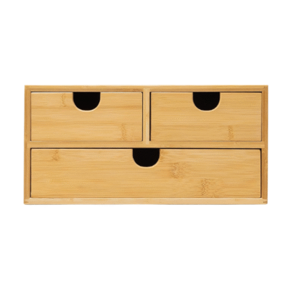 With three smoothly sliding drawers, and an optional model that includes a handy open shelf, this organizer provides a versatile way to store stationery, small tools, brushes, or everyday essentials. The compact size makes it easy to place on any desk or tabletop without taking up unnecessary space. Delivered fully assembled, it’s ready to use straight out of the box. Whether for the office, studio, or home, this bamboo organizer helps you create order with style.