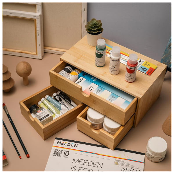 A sleek and practical storage solution designed to keep your workspace tidy and inspiring. Crafted from natural bamboo and finished with a smooth NC varnish, it offers durability, eco-friendliness, and a touch of elegance that fits seamlessly into any home or studio.