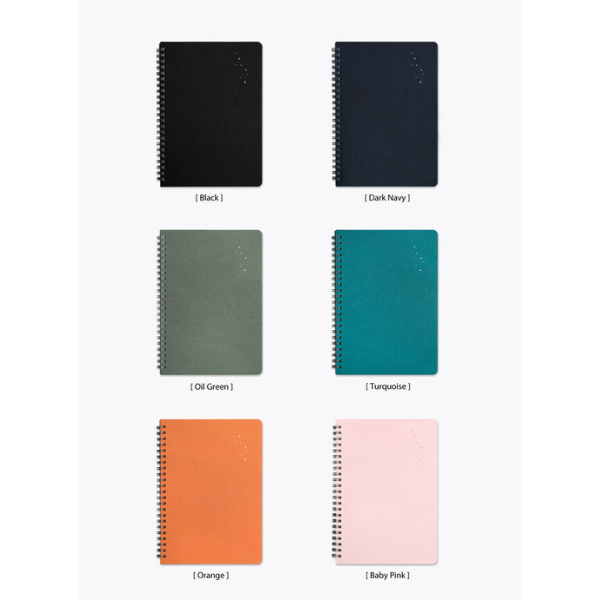 The notebook’s softcover is made in Germany and comes in five beautiful colours, each featuring an iridescent twinkle constellation design. The twin ring binding allows the pages to lie completely flat, making it easy to write comfortably across both sides of the spread. Pages are perforated and detachable, so you can tear out notes neatly when needed.