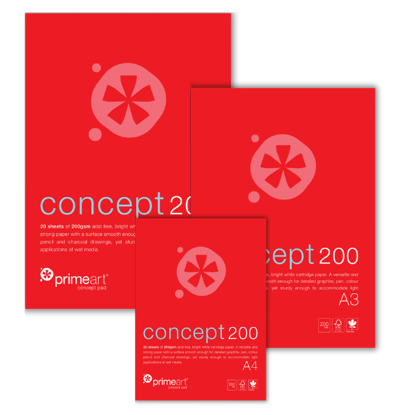 The Concept pad is comprised of heavyweight drawing paper that is ideal for all your dry mediums like pencil, pen, charcoal and pastels. The surface texture is smooth, with a satin feel and although it would not allow heavy layering of pastels or charcoal (because of the absence of tooth), pencil work with fine detail will look crisp and sharp.