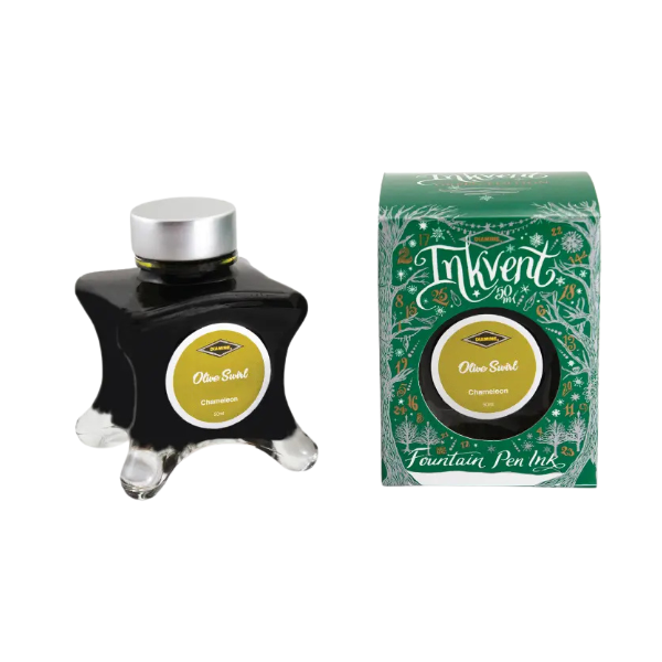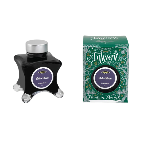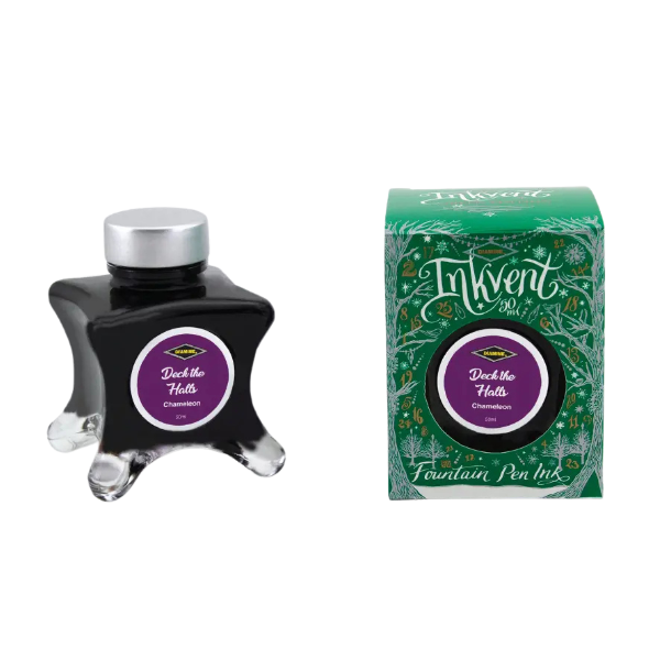 Celebrate the joy of creativity with Diamine Inkvent Fountain Pen Inks, a festive collection designed to inspire writers, artists, and calligraphers. Originally launched as a limited-edition advent calendar series, these inks have gained immense popularity for their unique colors, shimmer, and sheen effects. With a variety of finishes including standard, shimmering, scented and sheening inks, the Inkvent collection offers something special for every writing and artistic style. Each ink in the series is water-based and fountain-pen-safe, ensuring smooth flow, vibrant color payoff, and easy cleaning. Housed in beautifully crafted glass bottles, Inkvent inks are as much a delight to display as they are to use. Whether for journaling, calligraphy, or creative artwork, this collection transforms ordinary writing into a festive celebration of color and design.