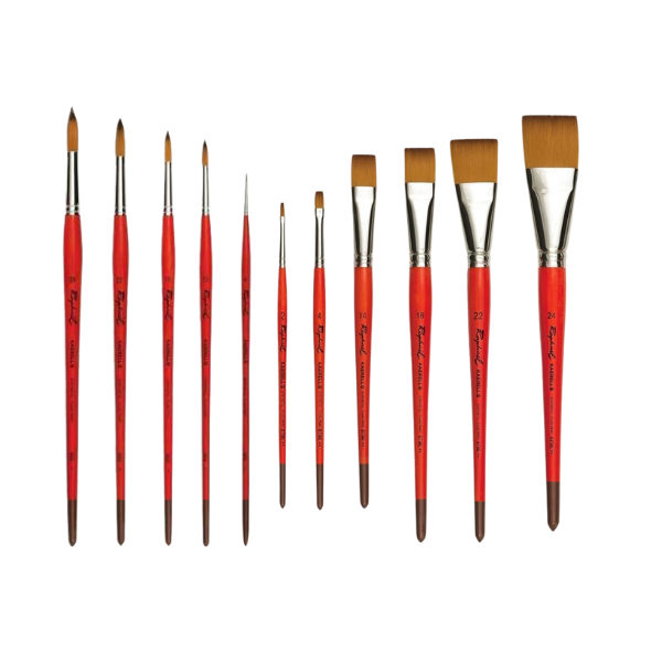 - Kaërell “S” polyamide synthetic fibres: Extra-supple golden synthetic hair designed to imitate the look and functional behaviour of natural sable. They give a soft feel under the bristles while offering good paint holding and release.