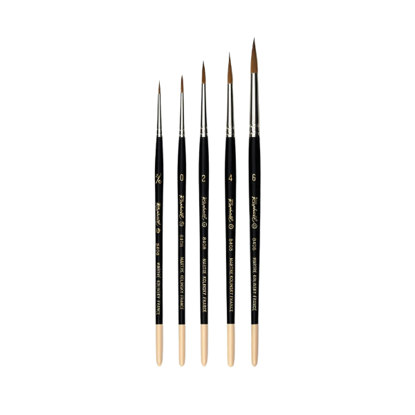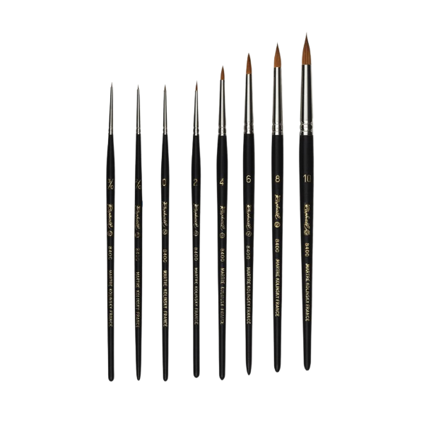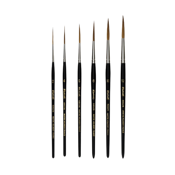 - 100 % Kolinsky Sable Hair – These brushes are made from genuine Kolinsky red sable, sourced from the tail hairs of the Siberian weasel. This natural hair is prized for combining excellent paint and water retention with a very fine, resilient point.