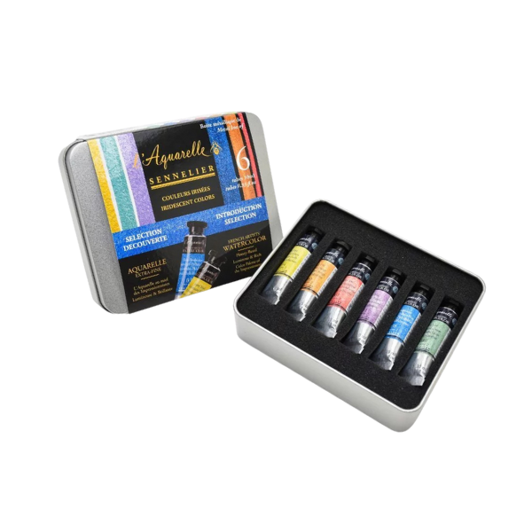 Includes Iridescent Phthalo Blue, Iridescent Yellow, Iridescent Orange, Iridescent Vermilion, Iridescent Green, and Iridescent Purple.