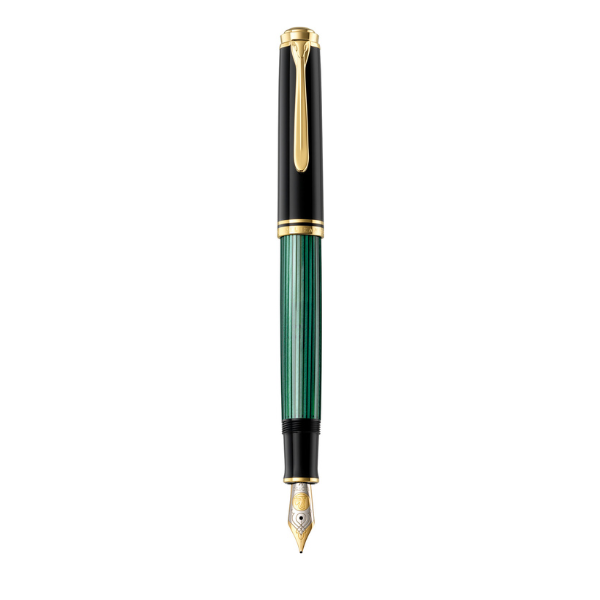 Pelikan offers two classic Souverän finishes. The Black/Green design reflects the original striped pattern introduced in 1950, while the Black/Red version provides a bold alternative with equal prestige. Both designs showcase the same meticulous striped barrel craftsmanship that has made Souverän pens legendary.