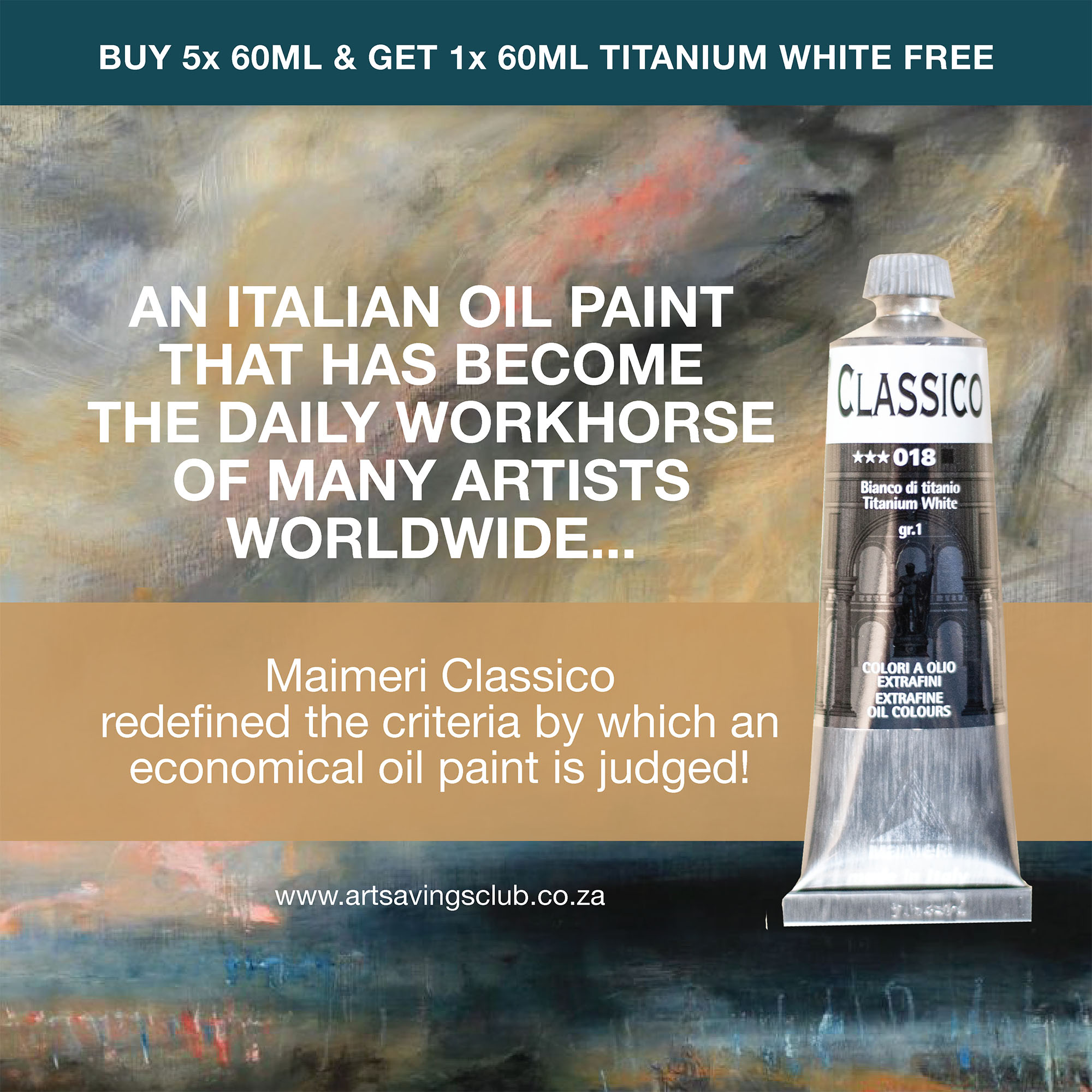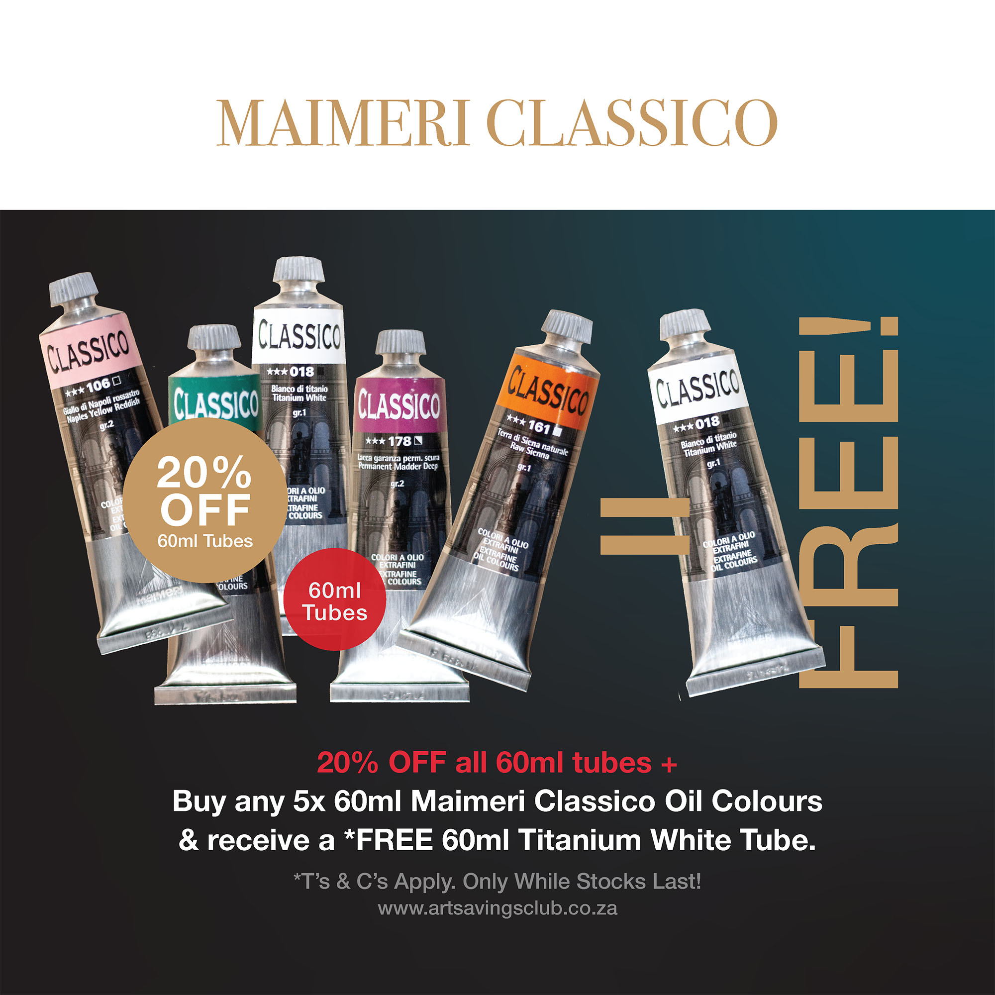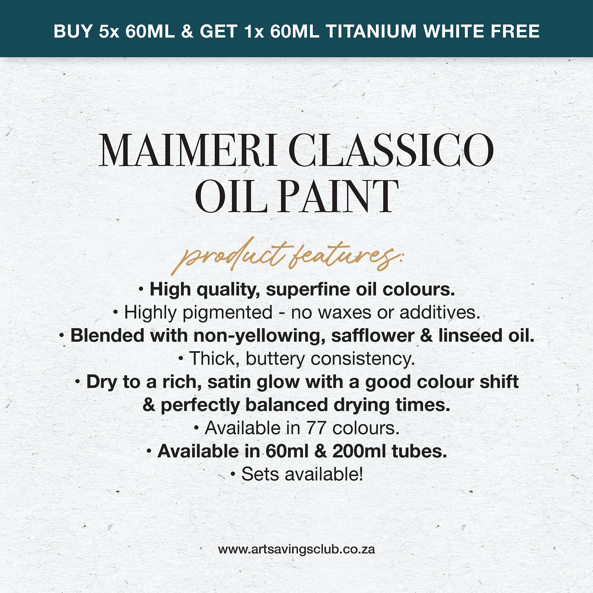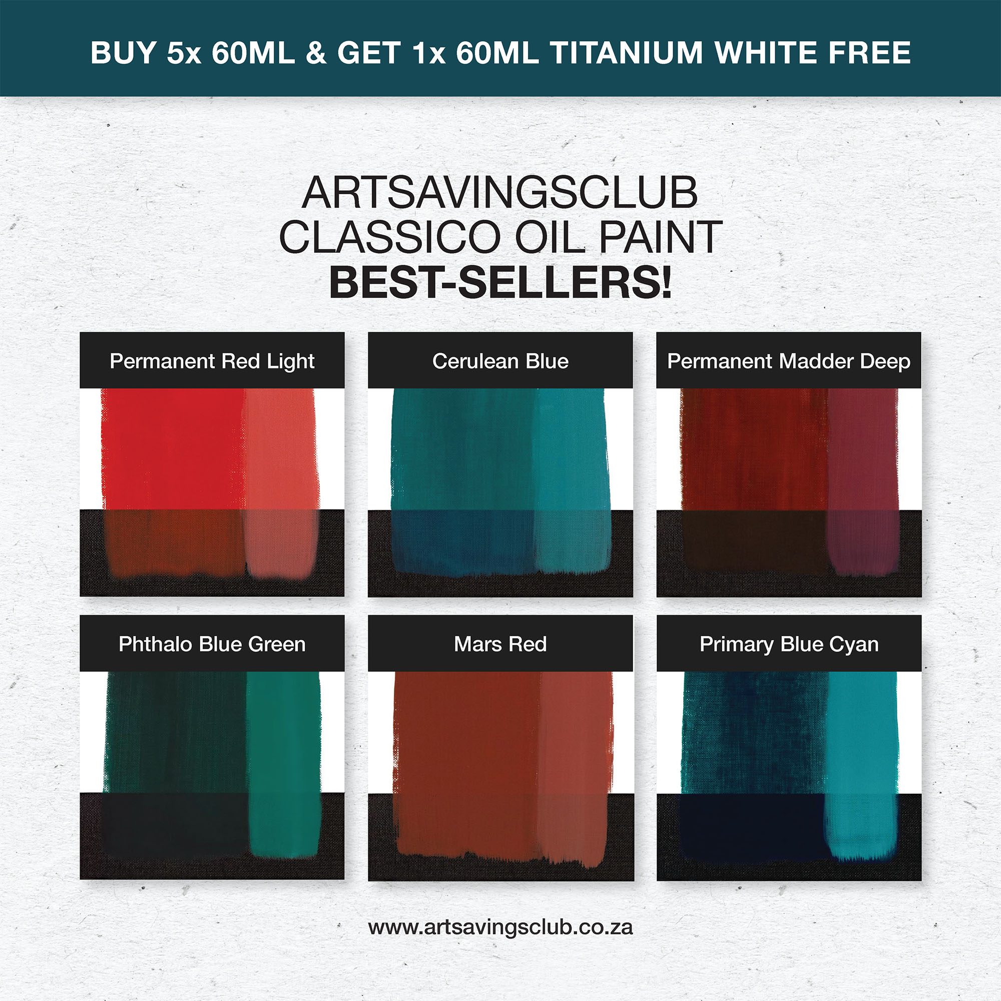 + Buy ANY 5 Classico 60ml oil paint tubes and receive 1 x 60ml tube White FREE!