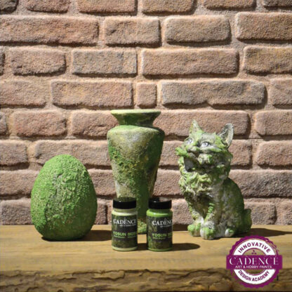 A water-based effect paint that creates a dimensional natural moss look and botanical appeal. For use on all paintable indoor and outdoor surfaces. Apply dark colour moss dimensionally with a stiff-bristled brush randomly. Allow the paint to drip; while wet, apply the light colour and allow to mix.