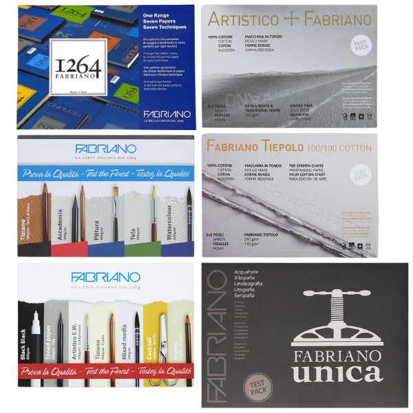 5 Sheets of paper incl: Tiziano 160gsm Terra di Siena Pastel; Accademia 200gsm Drawing; Pittura 400gsm Acrylic; Tela 300gsm Oil; Watercolour 300gsm.