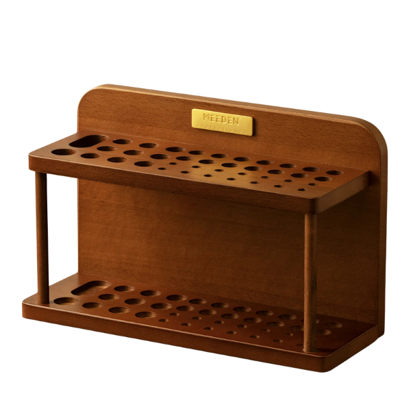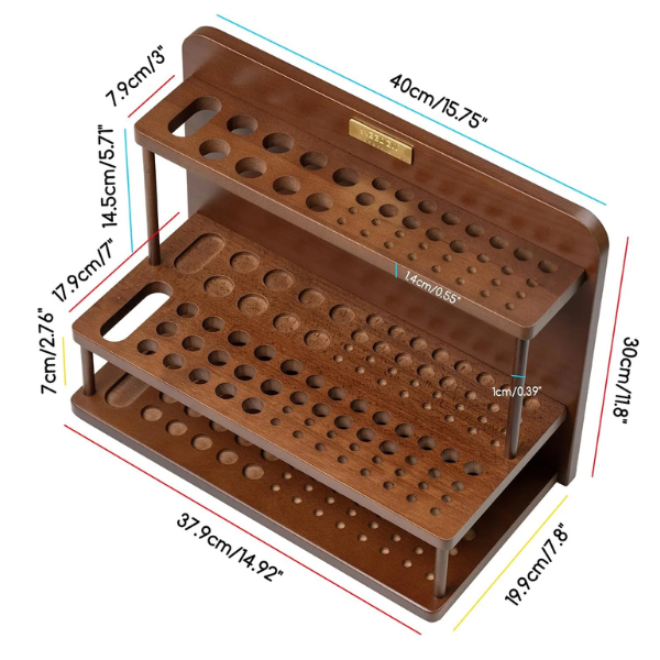 When more storage is needed, the two-tier organiser doubles capacity while maintaining the same refined walnut finish. Ideal for larger collections, it keeps tools visible, upright, and easy to access while saving desk space. Its reinforced design prevents tilting or wobbling, making it reliable for both delicate brushes and heavier tools. Elegant yet practical, it’s a standout organiser for professional artists or anyone who enjoys a tidy workspace.