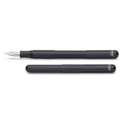 The Kaweco Supra Fountain Pen is a clever evolution of the Liliput design, offering remarkable versatility in both form and function. Crafted from CNC-turned, anodised aluminium with a sleek brushed black finish, it’s built for durability while maintaining a refined aesthetic. Its standout feature is a removable 3 cm connecting piece that allows the pen to switch effortlessly between a compact pocket size and a full-length writing instrument. Compatible with standard international cartridges and converters, it accommodates a range of ink options to suit your preference. The Supra features a large stainless steel screw-in nib shared with the Kaweco Original 250 and comes elegantly presented in a signature Kaweco tin.