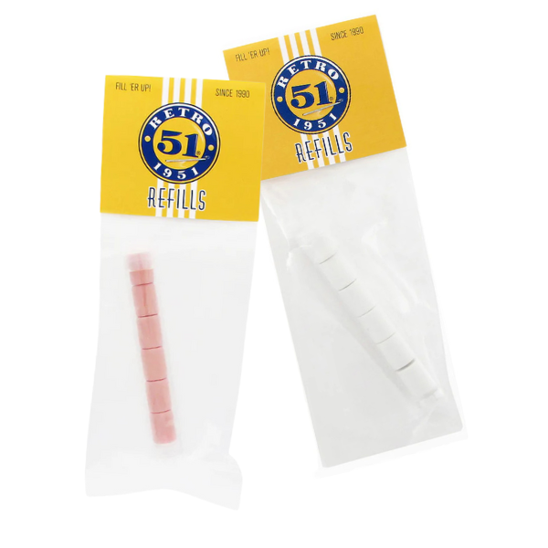 • Six erasers per set, designed to fit Retro 51 Tornado pencils.